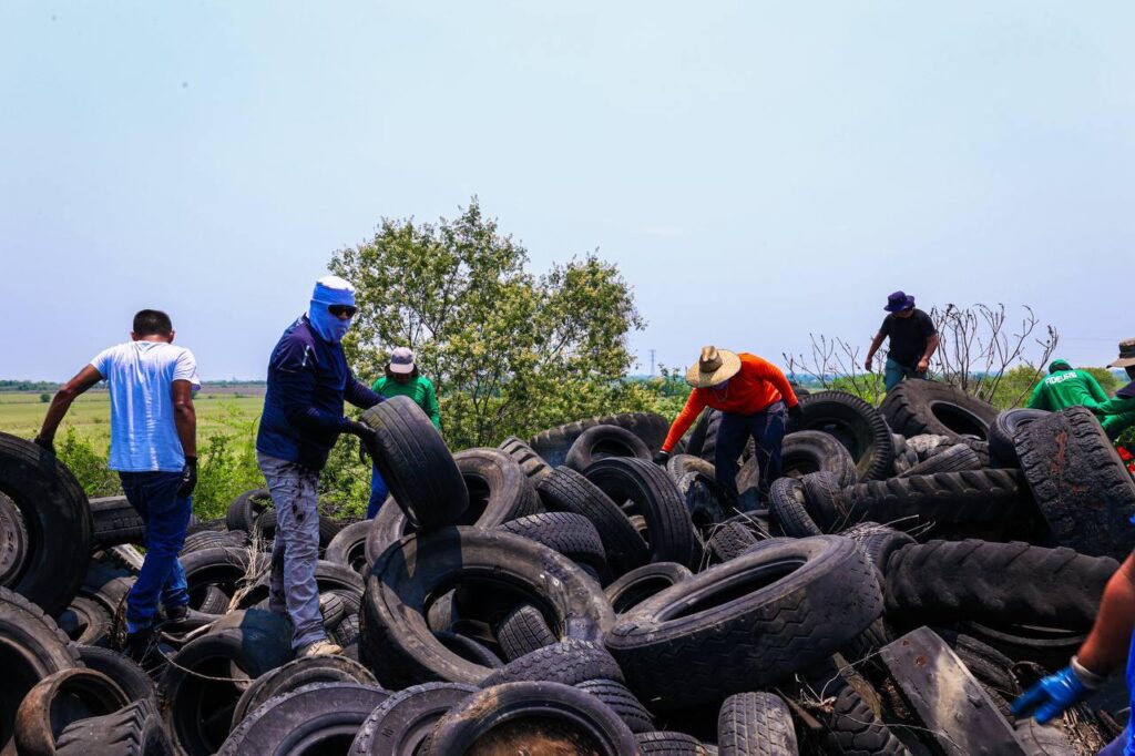 La acción fue realizada por elementos de Fuerza Civil, FIDEURB y SIMEPRODE, quienes inspeccionaron un predio ubicado sobre la vialidad Benito Juárez, donde se localizaron al menos mil neumáticos apilados de manera estratégica, con la intención de ser incinerados para extraer el alambre metálico de su interior y venderlo de forma ilegal.