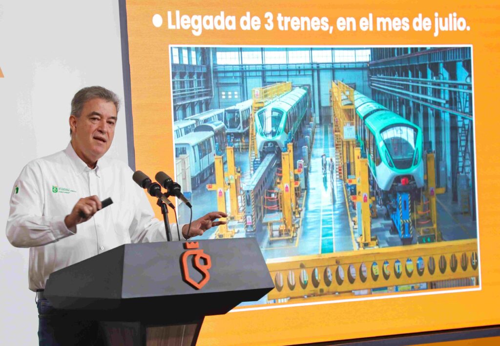 Villarreal Rodríguez informó la llegada de tres nuevos trenes en el mes de julio, que se sumarán al primero que ya se encuentra en exhibición en el Parque Fundidora. Para 2026, se contempla contar con un tren adicional, con lo que se reforzará el sistema de transporte.