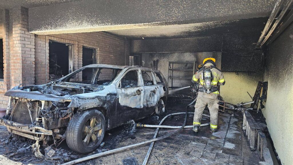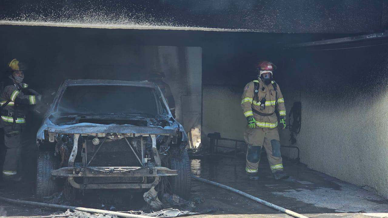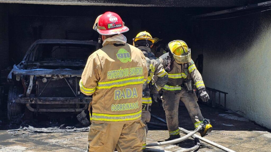 El fuego se originó en un vehículo estacionado dentro de la cochera de la vivienda. Al lugar acudieron elementos de Protección Civil, que controlaron el incendio en coordinación con cuerpos de auxilio municipales.