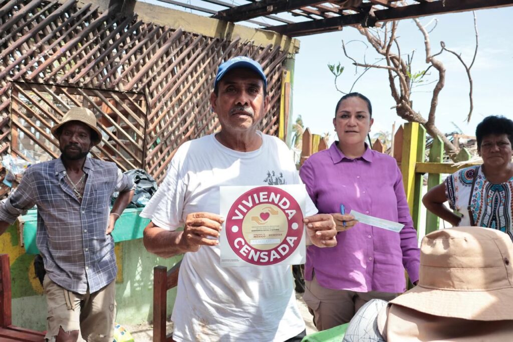 Detalló que más de mil servidores públicos ya se encuentran desplegados en los municipios, recorriendo las comunidades para registrar las afectaciones en viviendas, cultivos y pequeños comercios. Como parte del operativo, las brigadas colocan una etiqueta visible en cada inmueble visitado para marcar que ya fue censado.