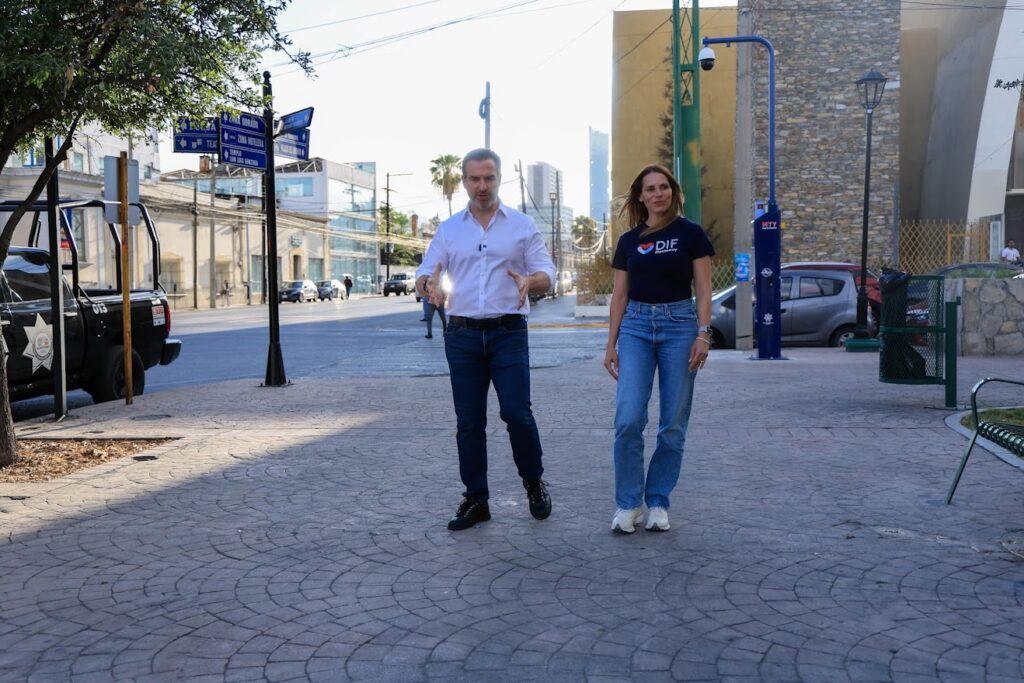El alcalde Adrián de la Garza encabezó un recorrido por el renovado espacio público, donde constató los trabajos integrales realizados por la Secretaría de Servicios Públicos. La intervención incluyó la siembra de árboles con sistema de riego, colocación de luminarias nuevas, nomenclaturas actualizadas, reparación de jardineras, bebederos, bancas y la emblemática fuente central.