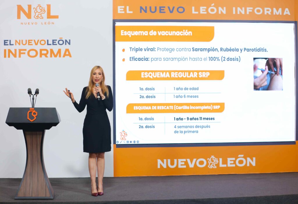 La titular de la dependencia, Dra. Alma Rosa Marroquín Escamilla, destacó la importancia de la vacunación, subrayando que el 92.4% de los casos confirmados en el país no contaban con antecedentes de vacunación. Aunque en Nuevo León no se han registrado casos confirmados, ya se han identificado 121 casos sospechosos, todos descartados, por lo que el riesgo sigue latente.