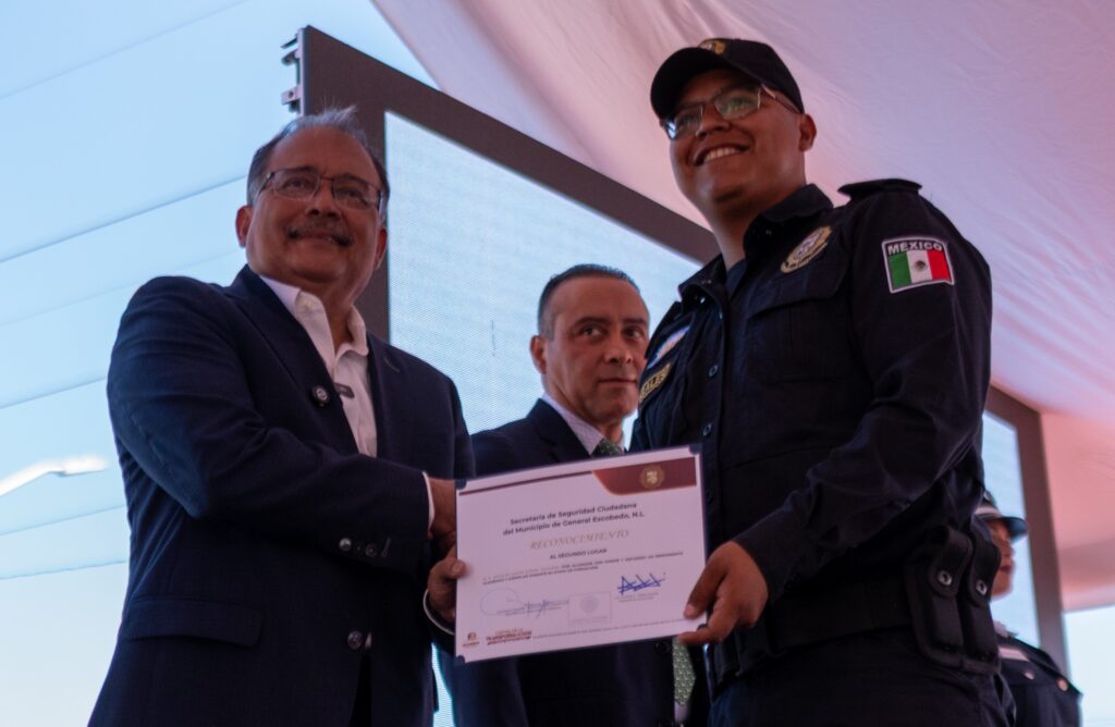 El Municipio de Escobedo incorporó este lunes a 35 nuevos elementos a la corporación PROXPOL, y entregó reconocimientos a 98 policías por su labor destacada en el servicio.