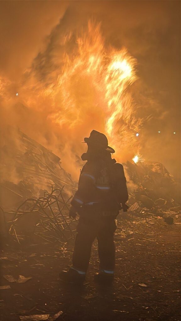 El incendio, al interior de una chatarrera, movilizó a cuerpos de rescate, minutos antes de la media noche, en el municipio de Apodaca.