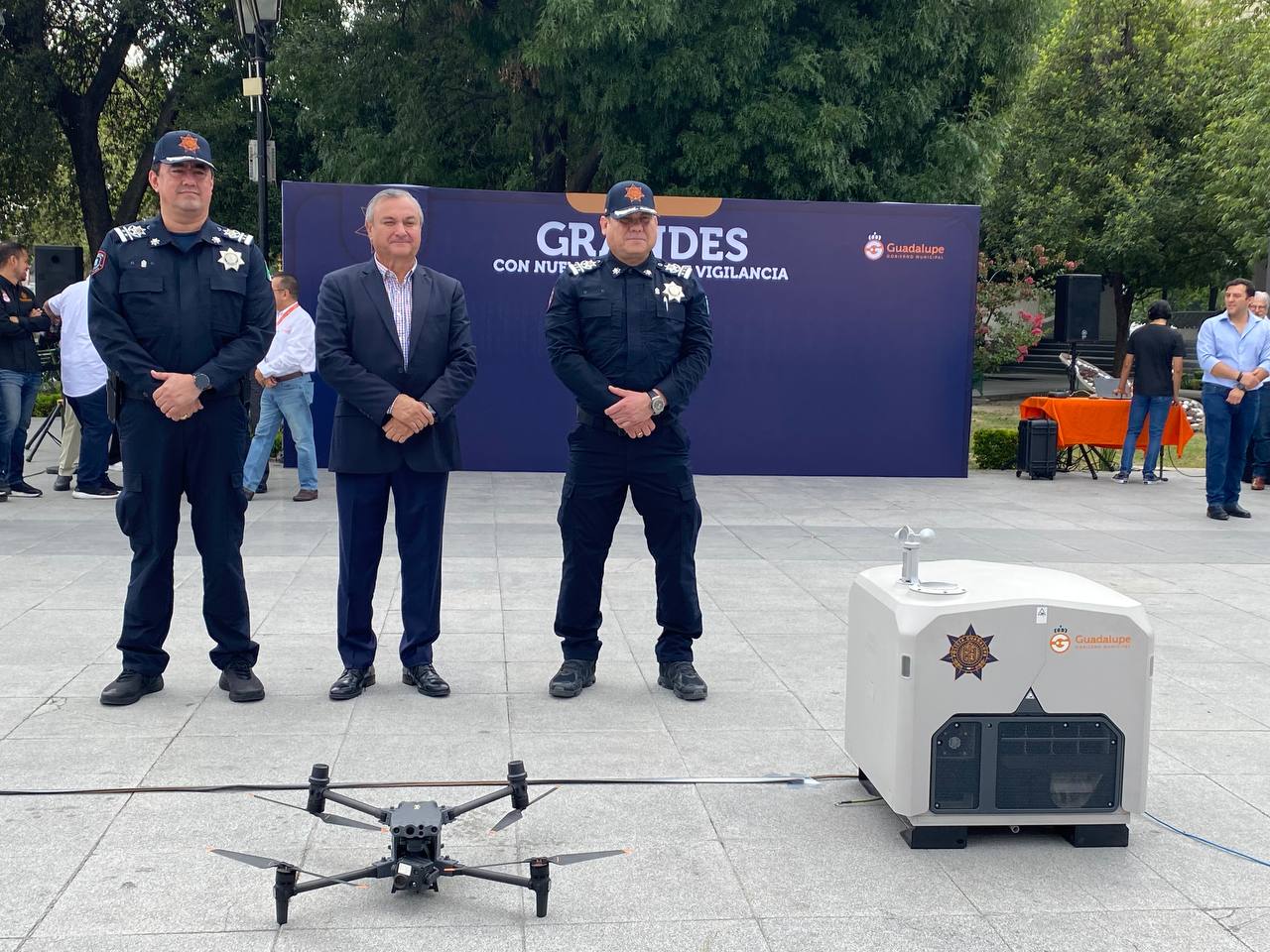 Con la adquisición de seis nuevos drones de última generación, el municipio de Guadalupe coadyuvará en las labores de vigilancia de la Secretaria de Seguridad Pública, ya que podrán tomar acciones en tiempo real sobre situaciones de emergencia que se presenten al poder captar las placas de los vehículos y seguirlos autónomamente, cuenta con reconocimiento facial, mapa de calor y visión nocturna.