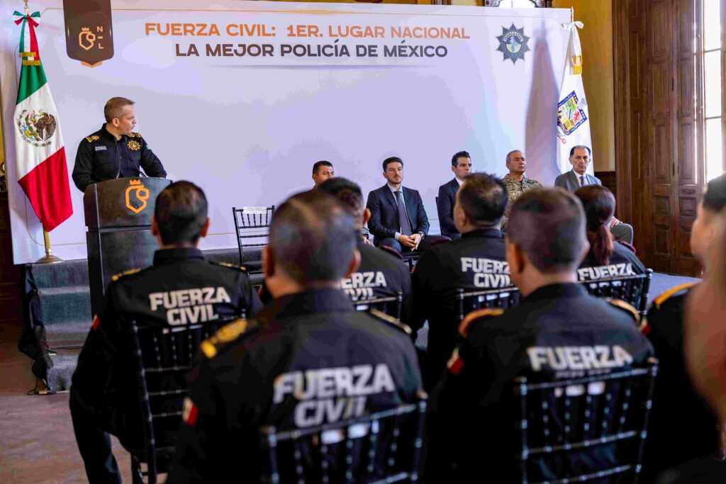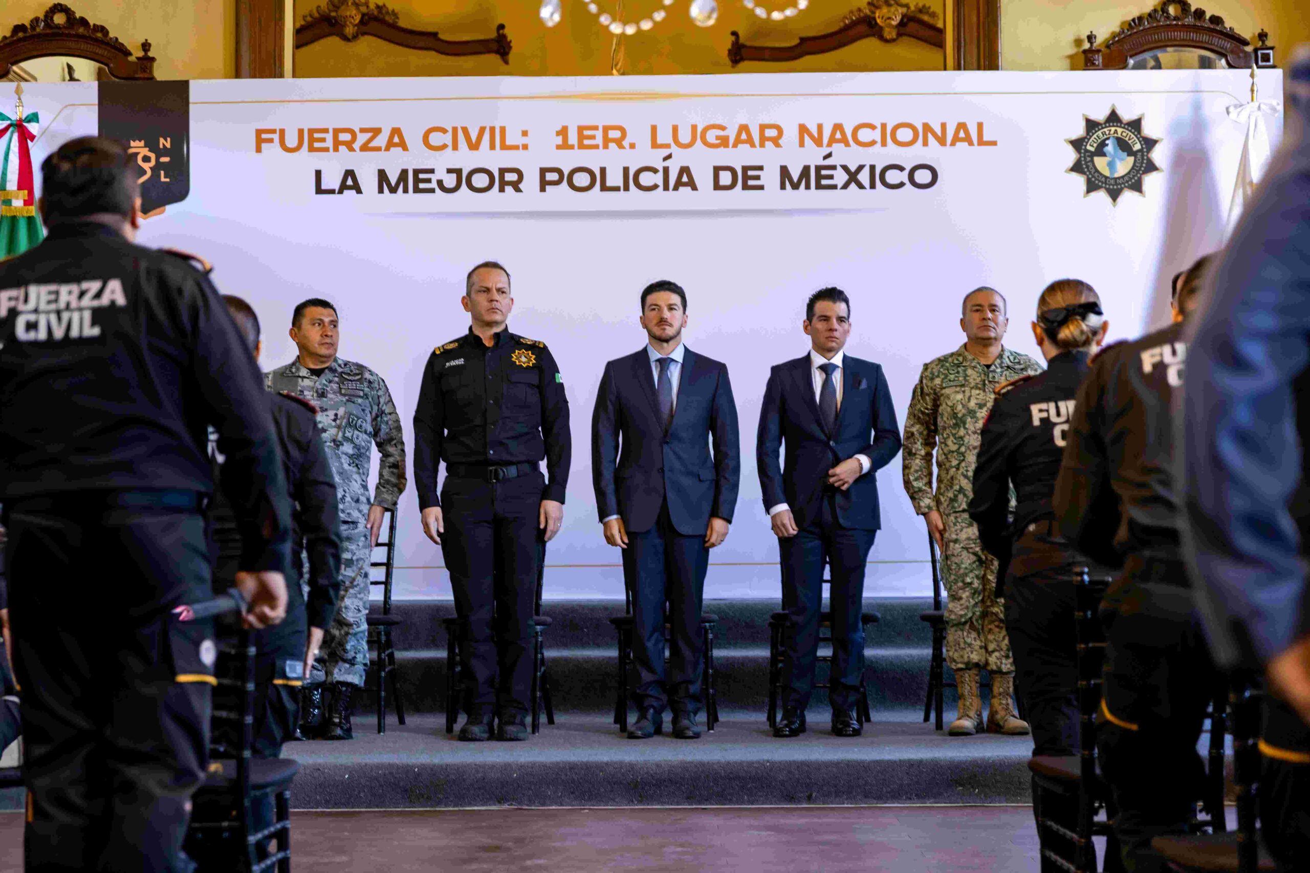 El Gobernador Samuel García Sepúlveda, reconoció a Fuerza Civil por ser la mejor policía, luego de ser evaluada por la Encuesta Nacional de Seguridad Pública Urbana del INEGI.