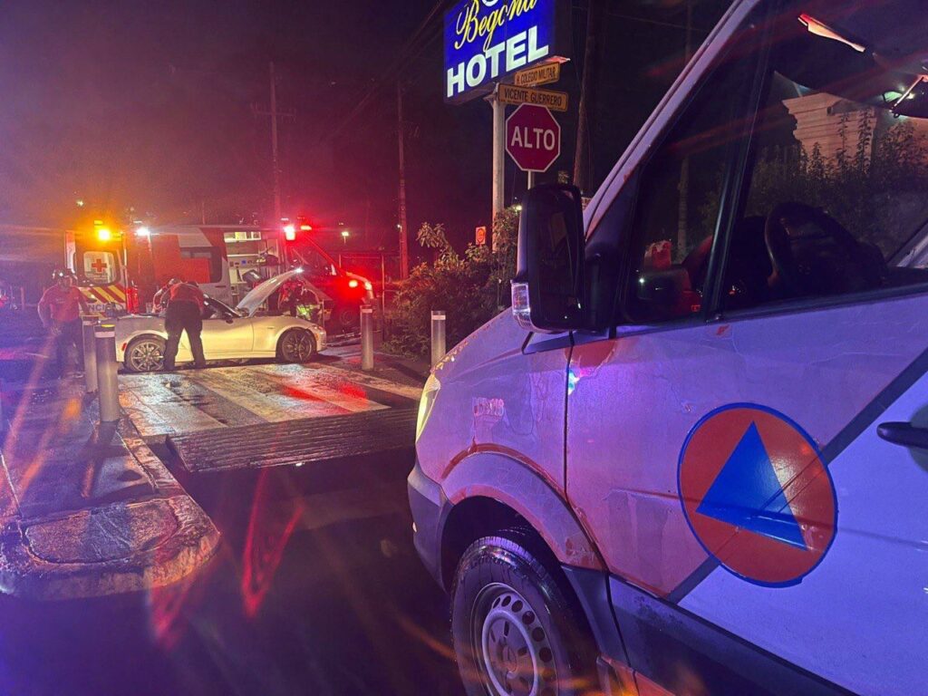 Hasta el cruce de Vicente Guerrero y Heroico Colegio Militar, arribaron elementos de Protección Civil del Estado y del municipio, quienes localizaron un vehículo compacto tipo Mazda, el cual se había impactado contra el muro de contención y en su interior se encontraba un masculino prensado, por lo que fue necesaria la implementación de equipo urbano para extraer al conductor, el cual, fue traslado al Hospital Metropolitano, con probable fractura en extremidad inferior izquierda, así como dolor cervical.