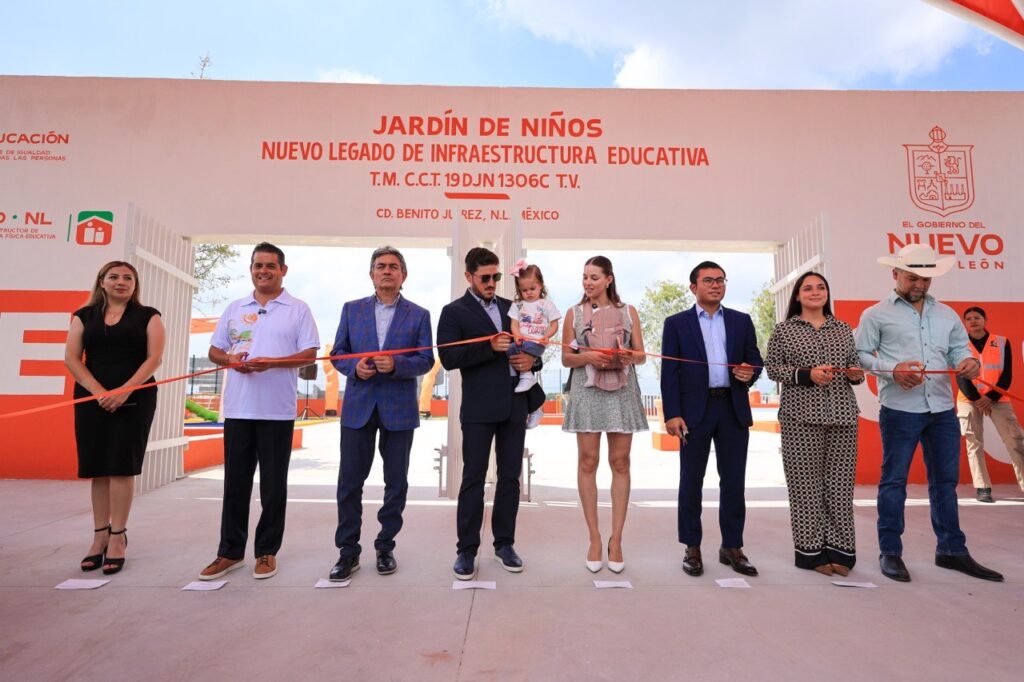 El Gobernador Samuel García y Mariana Rodríguez Cantú inauguraron en el Municipio de Juárez un Jardín de Niños en la Colonia Villa de Palmanova.