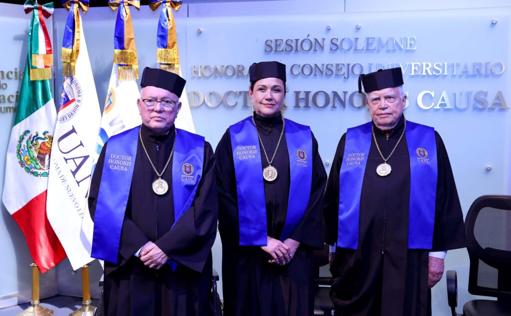 La Universidad Autónoma de Nuevo León (UANL) otorgó el Doctorado Honoris Causa a tres destacados miembros de la sociedad, por sus aportaciones en materia ambiental, económica y educativa.