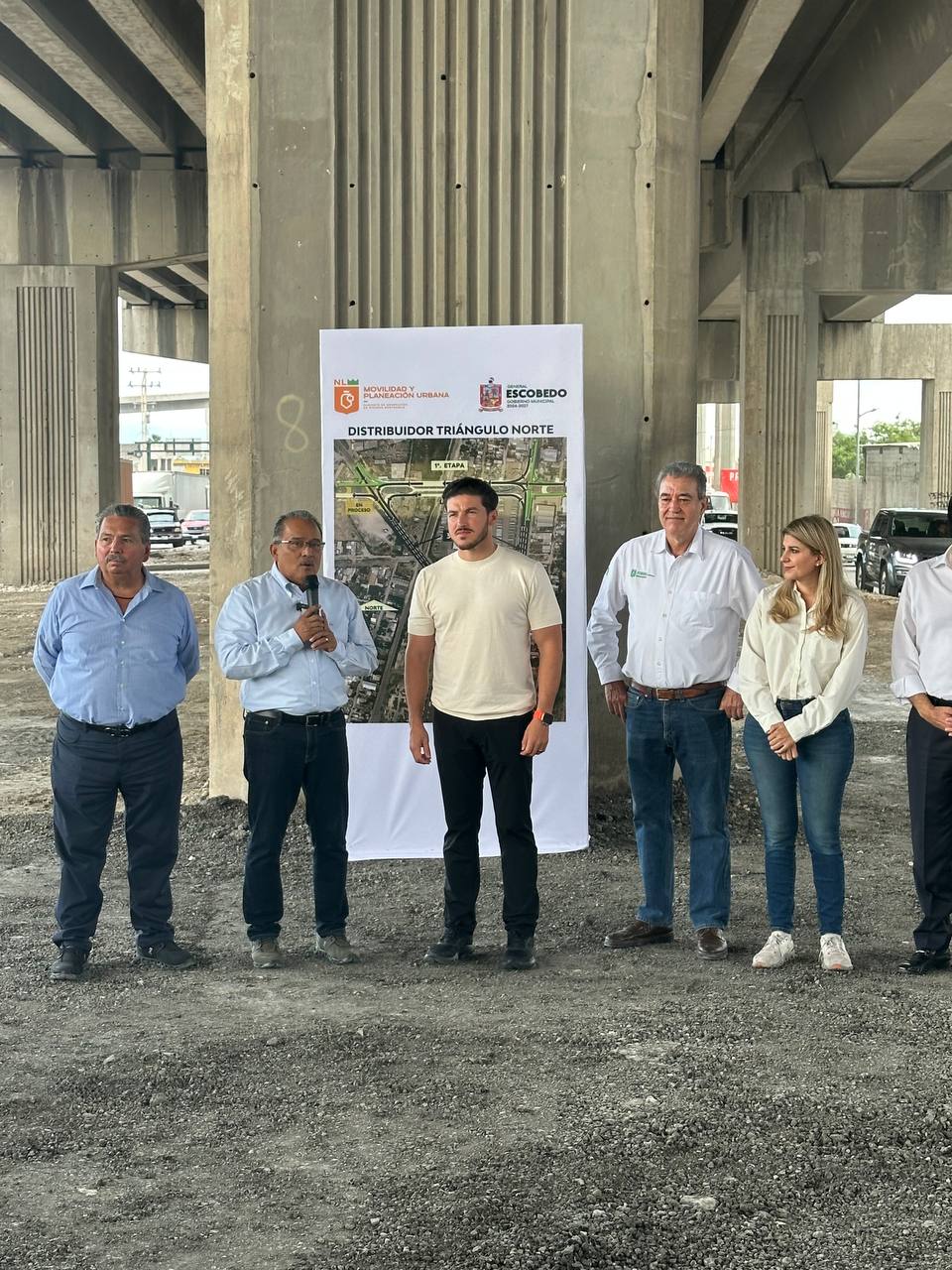 El Gobernador de Nuevo León Samuel García, el alcalde de Escobedo, Andrés Mijes, el secretario de Movilidad y Planeación Urbana, Hernán Villarreal, y el secretario técnico del Gabinete, José Antonio Quiroga, realizaron un recorrido de supervisión en la zona conocida como el “Triángulo del Norte”, un punto que durante años representó un serio cuello de botella vial.