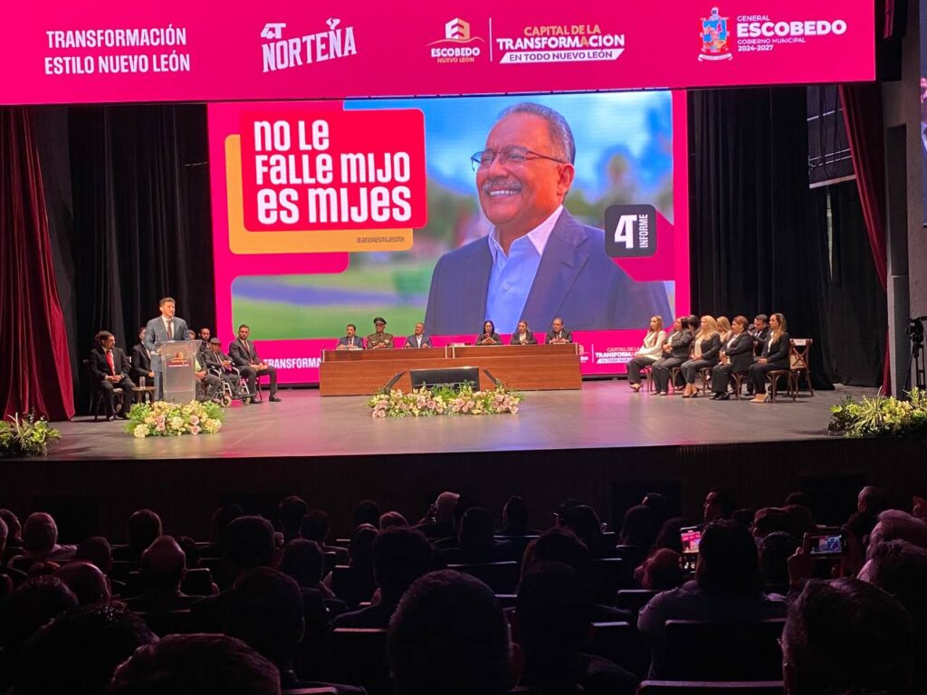 El alcalde del municipio de Escobedo, Andrés Mijes, rindió este lunes su cuarto informe de gobierno, correspondiente a su primer año de actividades al frente de su segundo periodo como presidente municipal, donde destacó los avances en inversiones nunca antes vistas, con la llegada de empresas internacionales que han generado más de 32 mil empleos durante la actual administración y en el ámbito gubernamental, dio ejemplo de cómo Escobedo es la Ciudad en un Clic.