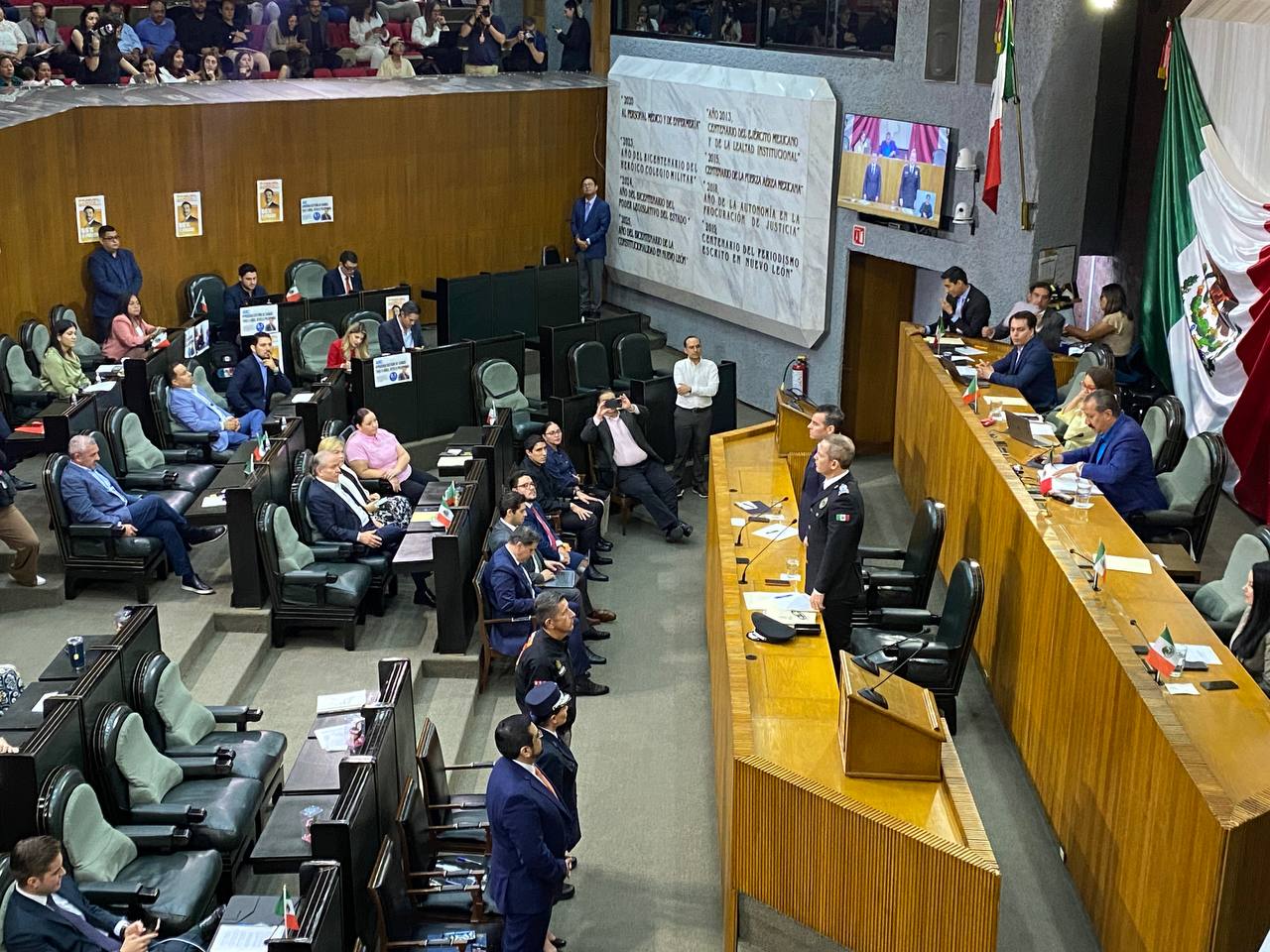 Encabezados por el Secretario General de Gobierno, Miguel Flores Serna, la y los integrantes del Eje de Buen Gobierno conformado por las Secretarías de Seguridad, Protección Civil, Universidad de Ciencias de la Seguridad y el Instituto de Defensoría Pública, acudieron al Congreso del Estado, en el inicio de la Glosa del cuarto Informe de Gobierno.