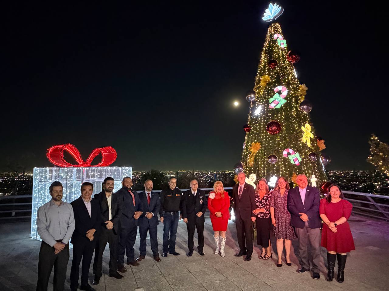 En un ambiente de hermandad, binacional, autoridades de Nuevo León y la ciudad de Laredo, Texas, celebraron el arranque oficial de la temporada navideña con el tradicional encendido del pino en la Explanada del Mirador del Obispado.