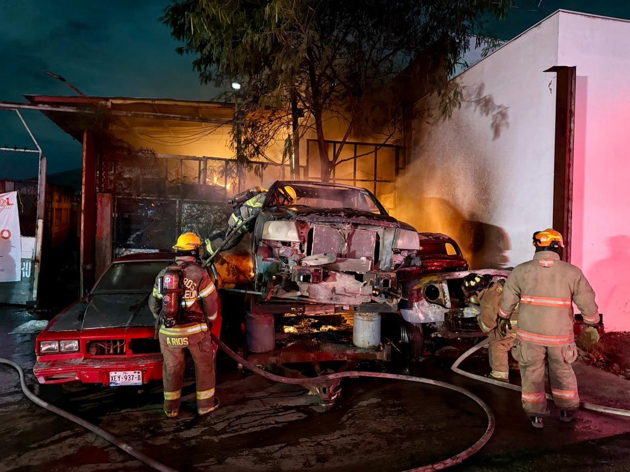 Tras el reporte, elementos de Protección Civil del Estado y de los municipios de San Nicolás y Monterrey, acudieron a sofocar las llamas que afectaron a dos vehículos al exterior, los cuales no se consumen en su totalidad, mientras que al interior se consumió un camión de tres y media, así como algunas puertas de vehículos.