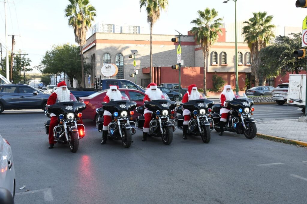 Como ya es tradición desde hace 20 años, un grupo de oficiales de Tránsito de Monterrey salió a las calles de la ciudad portando el traje de Santa Claus.