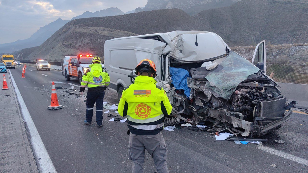 El conductor de una camioneta tipo crafter perdió la vida, luego de que al circular por el kilómetro 63 + 900 de la Autopista a Saltillo, en el municipio de García, en dirección de Monterrey a Saltillo, se impactara contra la parte trasera de un tractocamión con carga de doble semirremolque.