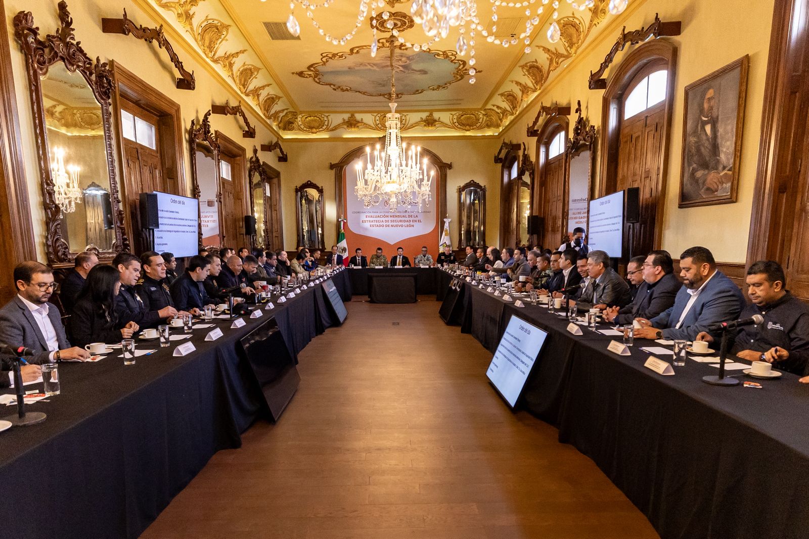 El Mandatario estatal explicó que el 70 por ciento de los nuevoleonenses se sienten seguros, sin embargo, durante la Mesa para la Construcción de La Paz de este viernes, pidió a los alcaldes seguir colaborando para mejorar y alcanzar la meta del 80 por ciento.