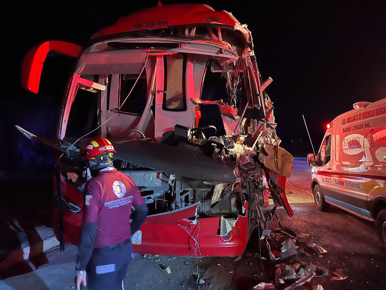Luego de que presuntamente un tráiler le cerrara el paso y lo impactara, un autobús turístico que viajaba de Tampico a Monterrey con 34 pasajeros participó en un aparatoso accidente la madrugada de este viernes sobre la Carretera Nacional, a la altura del kilómetro 136, en el área de Fitosanitaria en el municipio de Linares.