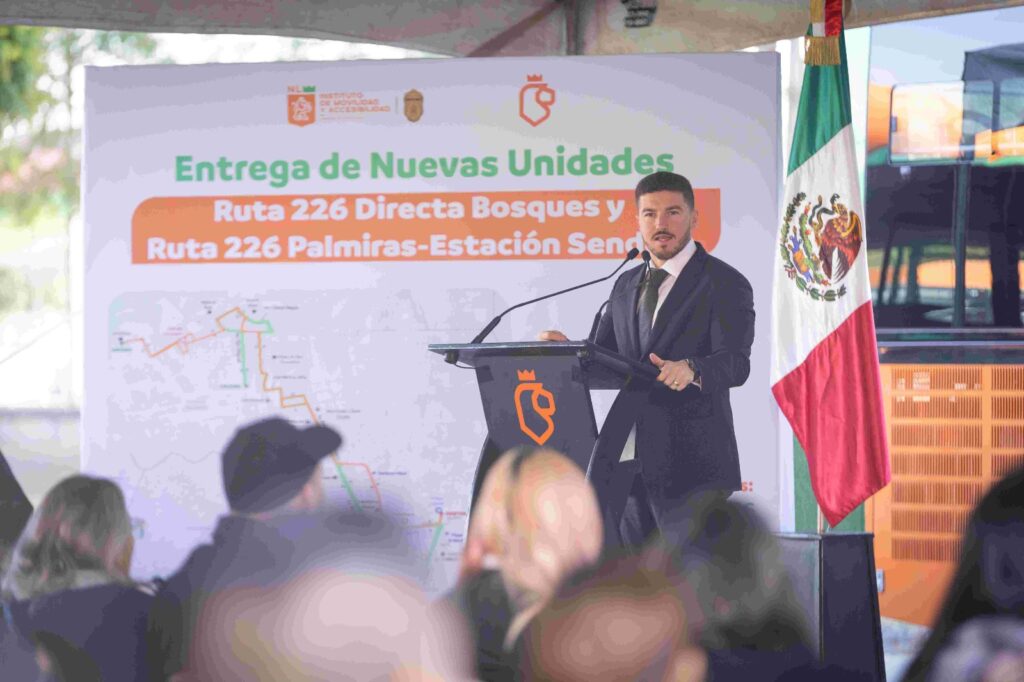 El Gobernador Samuel García Sepúlveda entregó 30 nuevas unidades a la Ruta 226 en sus Ramales 226 Directa Bosques y 226 Palmiras-Estación Sendero, las cuales darán servicio a los municipios de Monterrey, San Nicolás, Escobedo y El Carmen.