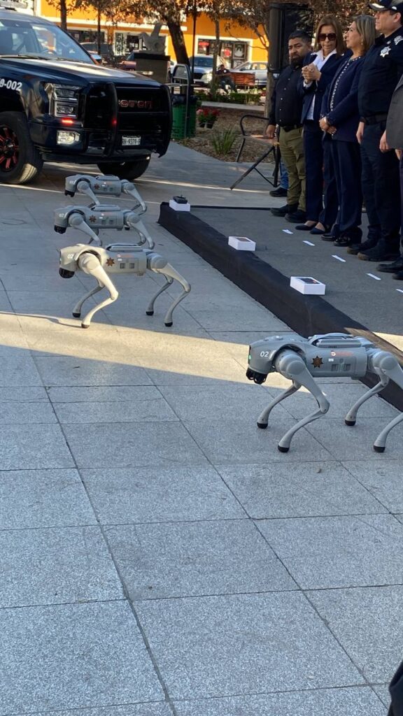 Cuatro perros robots tácticos forman parte de la nueva División K9-X que el municipio de Guadalupe implementará para reforzar la seguridad de ciudadanos y elementos operativos tanto en situaciones de riesgo como en eventos masivos.