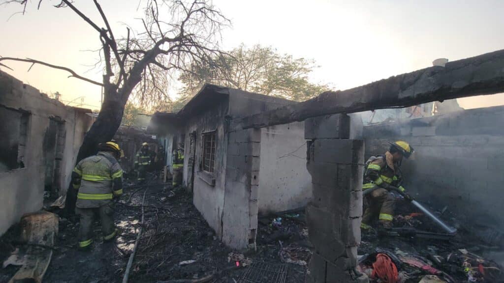 Elementos de Protección Civil y Bomberos trabajaron para sofocar el incendio, que consumió por completo el inmueble.