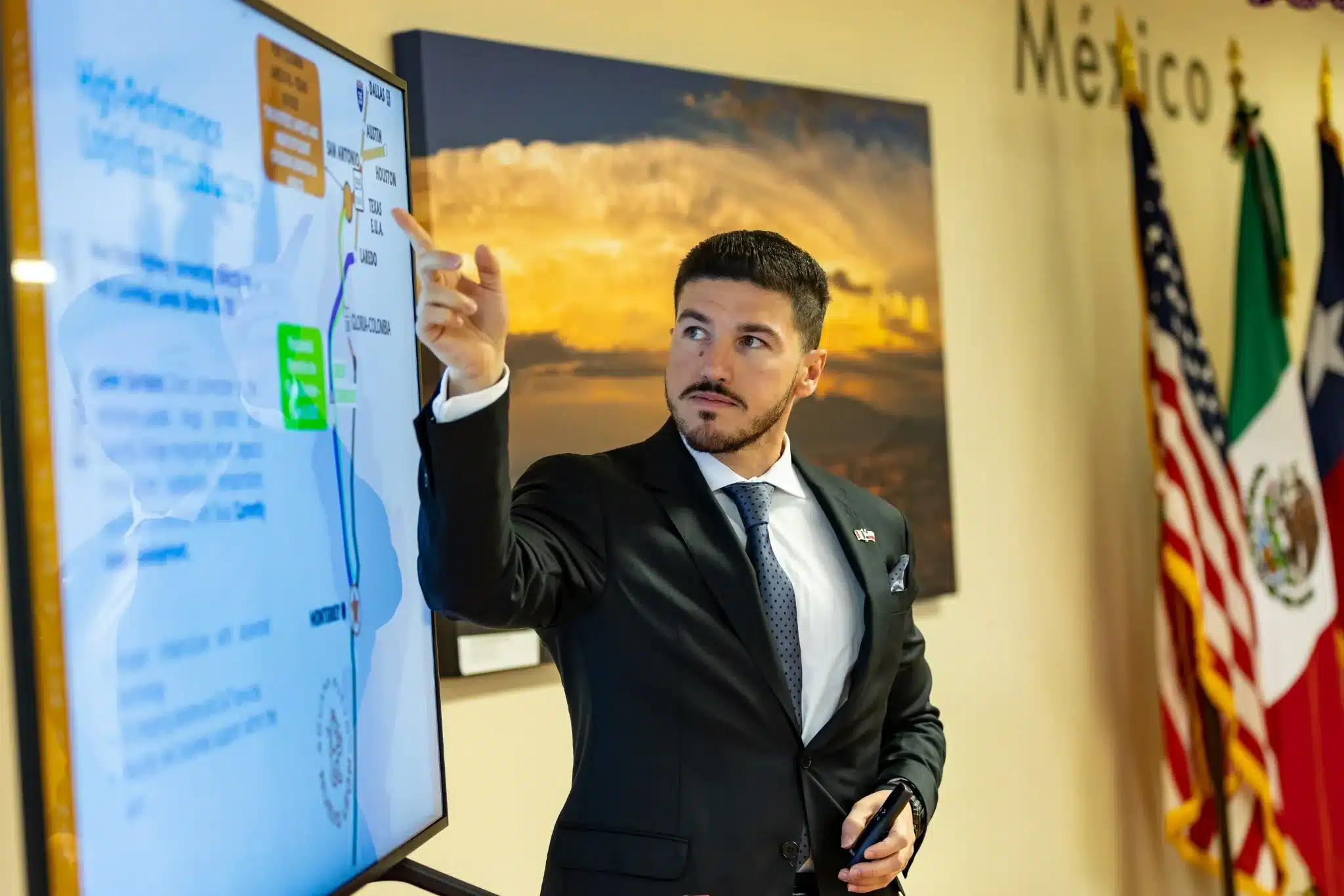 En el inicio de su gira por Texas, el Gobernador de Nuevo León, Samuel Alejandro García Sepúlveda, presentó ante empresarios el “Triángulo Mundialista”, una estrategia para fortalecer la colaboración entre Nuevo León, Dallas y Houston rumbo a la Copa Mundial de la FIFA 2026.