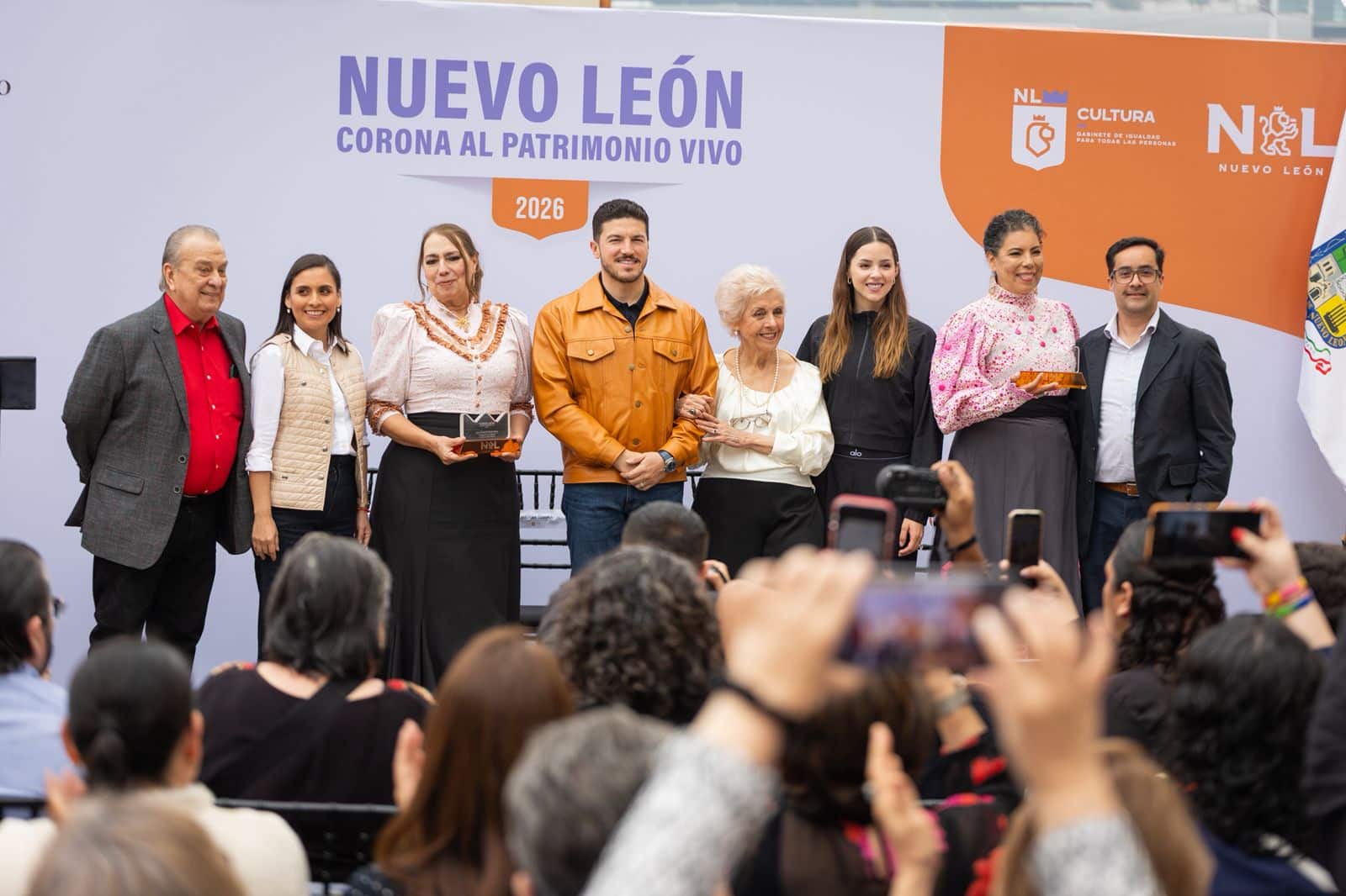 Por su destacada labor en la difusión de la música regional norestense, el Gobernador Samuel García Sepúlveda y la Titular de AMAR a Nuevo León, Mariana Rodríguez reconocieron a las cantantes Marilú Treviño, Luisa Fernanda Patrón y Dolores Martínez con la “Corona al Patrimonio Vivo”.