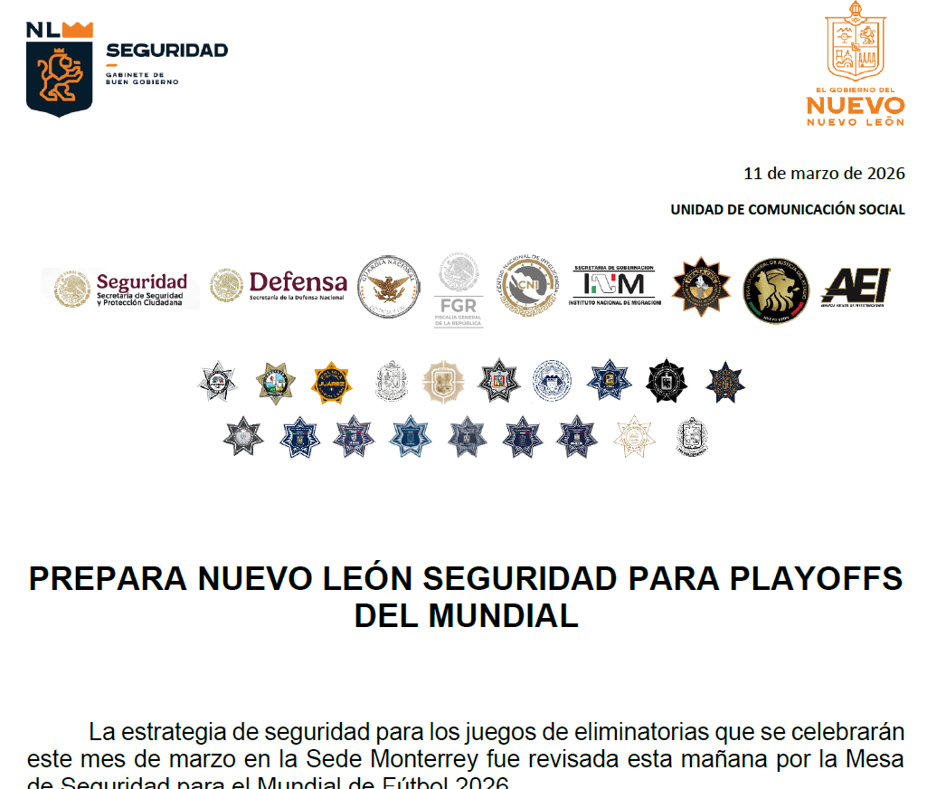 El Gobierno de Nuevo León prepara un operativo de seguridad para los juegos de eliminatorias que se celebrarán